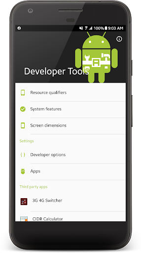 Using this app you can see which resource qualifiers that are being used, which system features that are available, and see details about the display and its sizes.
