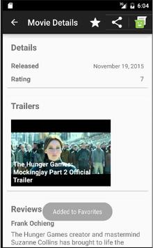 Allow the user to tap on a movie poster and transition to a details screen with additional information such as: