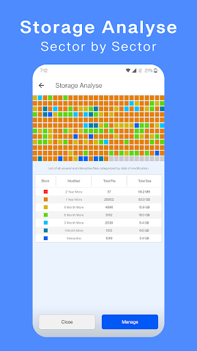 Scan sector by sector of your storage with files categorized by modification date and file size list, you can easily open video files and optimize or delete unusable files.