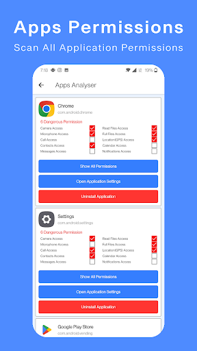 Also you can monitor applications with dangerous permissions easily and uninstall unusable apps.
