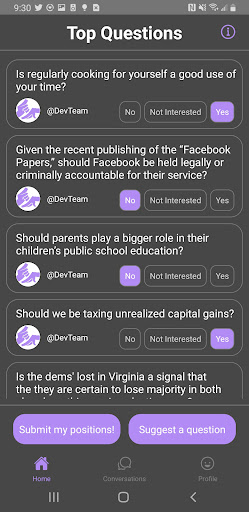 It's like Tinder, but you're swiping on the latest trending topics and happenings that you care about, and you're anonymously matched with your partner several times a week.