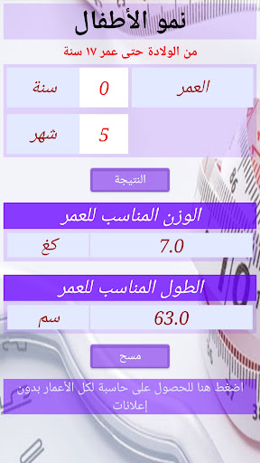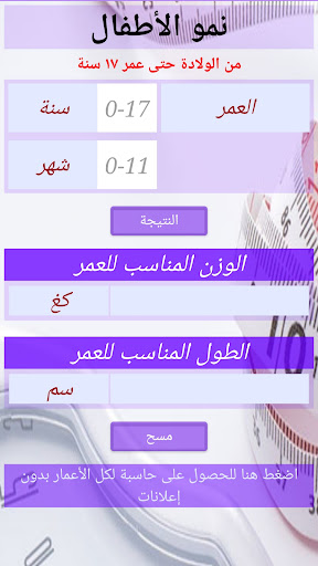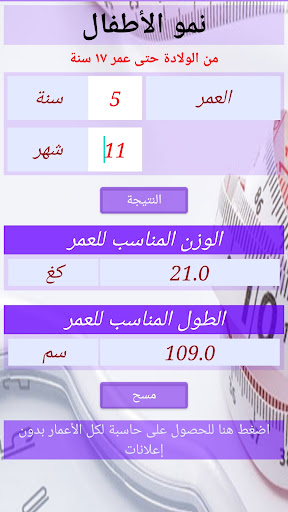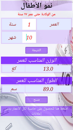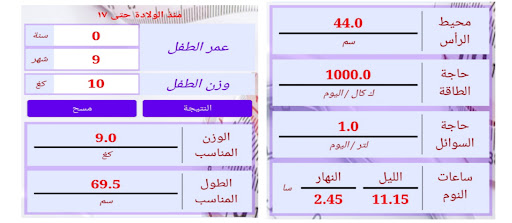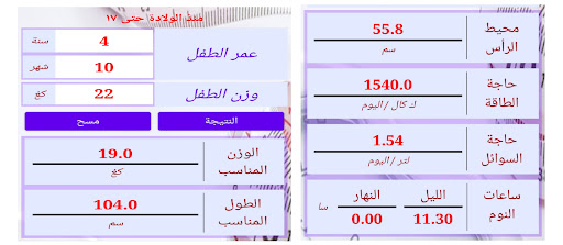 حاسبة طبية للوالدين والأطباء لمراقبة النمو وحساب الاحتياجات للأطفال منذ الولادة حتى عمر ١٧ سنة
