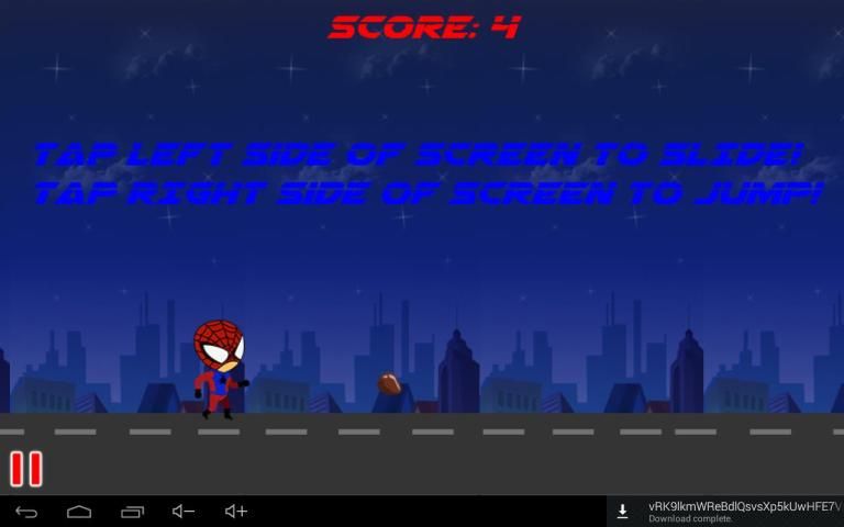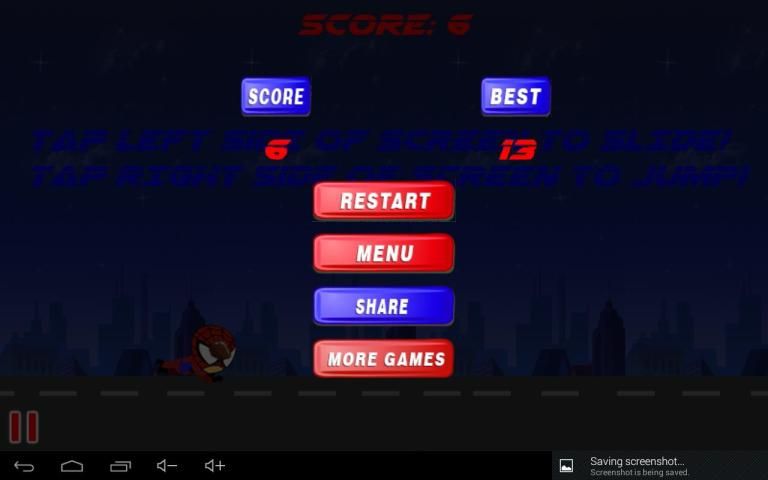 - Tap the left side if the screen to make the spider boy slide and right side of the screen to jump. This simple and addictive game will bring you lot of fun!