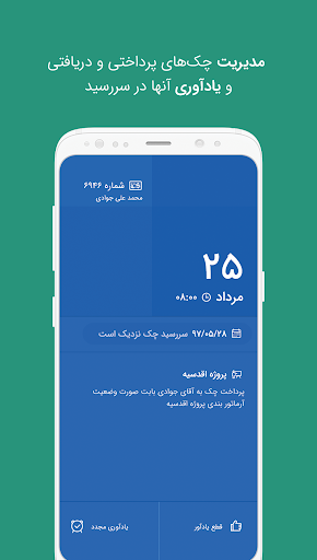 - إدارة الشيكات المدفوعة وتحصل عليها ولديها تذكيرات لهم