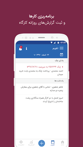 - لديه تقويم عمل لإدارة المهام وتسجيل تقارير العمل