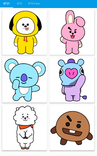 BTS Drawing هو تطبيق يوضح كيفية رسم BTS BT21 خطوة خطوة سهلة. كيفية رسم BTS أعضاء و BT21؟ تعرف على كيفية رسم أحرف BT21 بسهولة من خلال تطبيق PT21 التعليمي الرسمي. لا تحتاج إلى أي تجربة رسم لرسم BTS و BT21، تحتاج فقط إلى رسم خطوة بخطوة وفقا للقالب.