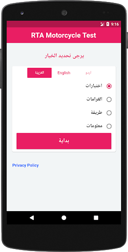 امتحانالدراجة النارية الخاص بهيئة الطرق والمواصلات متوفر سواء أكنت متصل بالشبكة أو غير متصل.