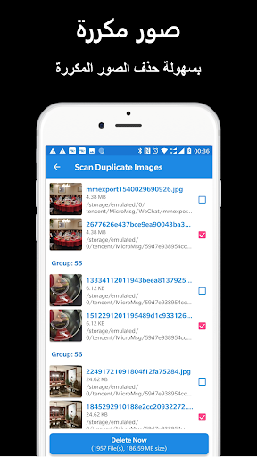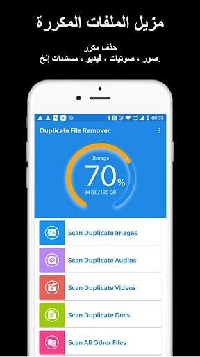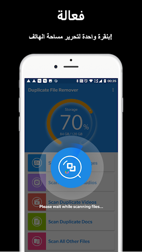 ● نوع ملف متعدد المسح الضوئي: مسح الكثير من الملفات المكررة مثل الصور المكررة ، وصوتيات مكرره ، وأشرطه الفيديو المكررة ، APK مكرره والوثائق المكررة الخ.