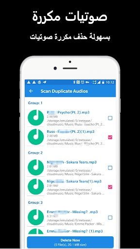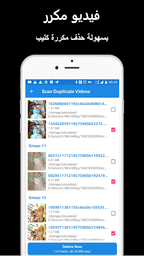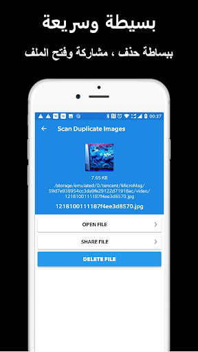 ● معاينه الملفات المكررة: معاينه الملفات المكررة قبل حذفها ، يمكنك فتح الملف المكرر ، مشاركه الملف المكرر إلى أصدقائك أو حذف الملف المكرر.