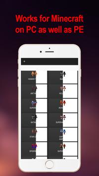 allows you to choose and apply a custom superhero skin to your Minecraft character for free with just the touch of a button! You can find your favorite Superhero Skin here! There are over tons of skins to choose from, with more being added every month! You can try your superhero skins on all types of maps that you want! They even work with the best mods for minecraft pe that you like.