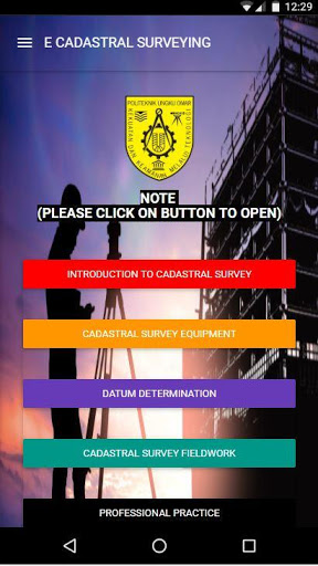 Assalamualaikum dan salam sejahtera ..kami bertiga (Thaqif, Aidil, Irfan) dari seksyen DGU 5A telah membuat projek Topical Studies sesi ini. Kami membuat inovasi berkaitan Kursus Cadastral Surveying iaitu nota yang sedia ada digantikan dengan nota dalam bentuk peta minda dan procedure kerja padang dalam bentuk video untuk semester 4 sahaja.Bagi semester 1 dan 3 pula nota juga dimasukkan kedalam Aplikasi ini.