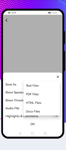تم تصميم صوت EstEtext إلى محول النص لنظام Android لاستخدام الذكاء الاصطناعي لتوفير نسخ دقيق وفي الوقت الفعلي.إنه ينسخ جميع اجتماعاتك ومقابلاتك ومحاضراتك والمحادثات الصوتية في الوقت الفعلي.كما يضمن خصوصيتك والأمان عن طريق إجراء النسخ دون اتصال على جهاز Android الخاص بك.من خلال ميزات التخصيص الخاصة به ، يمكن للتطبيق نسخ مكبرات صوت متعددة ، وإنشاء ملخصات اجتماعات ، ودعم ما يصل إلى 24 لغة بما في ذلك اللغة الإنجليزية والإسبانية والهولندية والصينية.يمكنك حفظ ملفات النسخ الخاصة بك في TXT أو Word أو HTML أو PDF.
