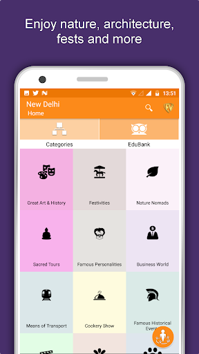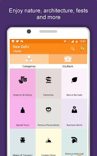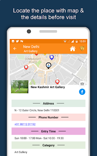 بصرف النظر عن هذا، نيودلهي سفر واستكشاف يرشدك لماذا، متى وكيفية زيارة أماكن مختلفة في نيودلهي مع موقع دقيق في الخريطة التفصيلية. هناك طريقتان لاستكشاف هذا التطبيق - عرض الفئة وإظهار الأماكن المفضلة Edubank. ضع وجهاتك واحصل على الطرق على الخريطة. ليس هذا فقط، يمكنك أن ترى بالضبط كيف تبدو الأماكن مع عرض الشارع المتكامل في هذا التطبيق. يحتوي التطبيق أيضا على ميزة لتقييم وكتابة المراجعة / الخبرة فيما يتعلق بالكيان (ق) من خلال تسجيل الدخول. ستساعد تجربة السفر والتقييم في مجتمع المستخدمين.