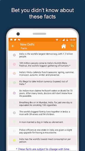 جميع الميزات والصور في دليل مدينة نيودلهي متوفرة حاليا. هذا تطبيق New Delhi Travel App مخصص للجلوبتروترين الذين يذهبون من الاقتباس، "جميع الرحلات لديها وجهات سرية للمسافر من غير مدرك". مع دليل سياحي نيودلهي، يكشف النقاب عن الأماكن المحجبة، والتواصل مع عدد كبير من الناس، وفهم الثقافة والفن والتاريخ، والتحدث مع السكان الأصليين بلغتهم، وإيلاء الطعام الأصيل واتخاذ فرحة في الاحتفالات.