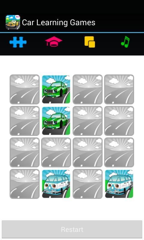 ألعاب مباراة سيارة خاصة لمدة 3 سنوات طفل عمره. ولكن جميع أفراد الأسرة يمكن أن يكون رحلة ممتعة مع هذه المذكرة الألعاب. تتضمن السيارة عبة المطابقة، وروضة أطفال ألعاب تعليمية الأشكال بطاقات والألوان. هذه ألعاب الذاكرة طفل تشجع أيضا: