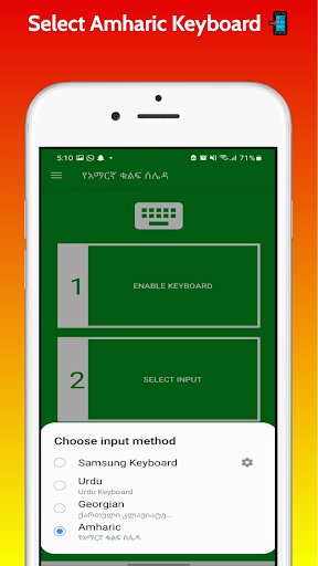 • ابدأ في كتابة amharic langauge (የአማርኛ የአማርኛ ቁልፍ) في هاتفك المحمول.> ☑ ميزة Langauge المزدوجة