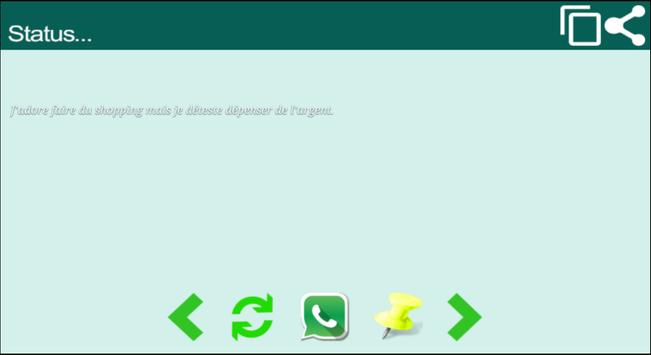 L'application Status pour Whatsapp vous offre plus de 80 Status pour partager et envoyez directement à vos amis et famille.