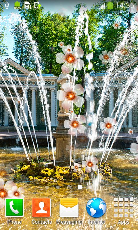 If you take great delight in watching flowerbeds and lovely bushes of different shapes then you should definitely download these top backgrounds. You will be inspired to do remarkable things in your life. With the magnificent Fountain Live Wallpapers you can travel to the town square and marvel at the captivating musical fountain. One of the best things in the world will be in front of you and watching it will be an enjoyment for all the senses. You can now have the picture of the incredible fountain that resembles the downy tufts. Visit the famous cities and walk among the buildings. If you want to have a lot of fun you can go to a spray pool and enjoy. On the other hand, if you prefer to breathe the fresh air and want to rest watching the greenery all around you, you can sit under the tree and smell the freshly cut grass. The popular Fountain Live Wallpapers are designed to make your device better and more beautiful. They can be used by both kids and adults, by all of you who appreciate these magnificent and precious works of art. The latest backgrounds can come to your device when you click the download button and after that it is no problem to set them. Just tap once to preview the image and then hold to set your chosen background. There is no time left to think more about this, just hit download and install them on your device. You will not regret your decision. Is there more gorgeous background for you then the fountain with a little angel in the middle. You can have these cool Fountain Live Wallpapers now totally free of charge!