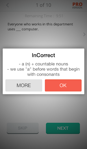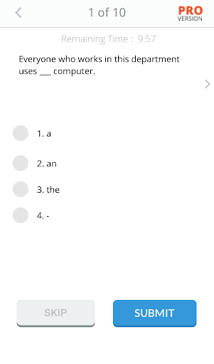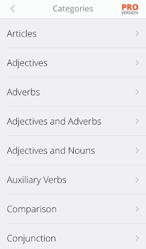 EnglishTestStore Grammar Test app contains basic and advanced English grammar tests. After answering a question, a feedback will give you an explanation why your answer is correct and why it is incorrect. You can review your result after completing your test. This application is suitable to beginners as well as advanced learners. This is free version, in which you can take 3 tests in each category (30 questions).