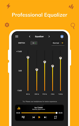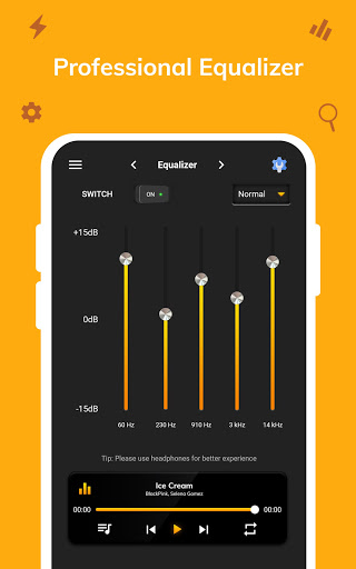🔹 ضبط المؤثرات الصوتية الخاصة بك مع تعادل قوي مثل : pop، metal، rock، ...