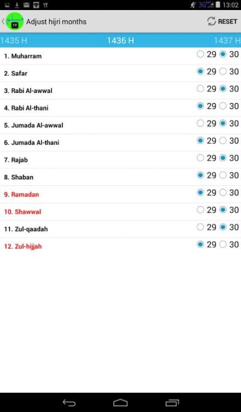 - The number of days each month of the Hijri adjustable 29 or 30 days.