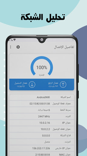 أحصل على معلومات احترافية عن اتصالك بالشبكة المحلية LAN بواسطة Wi-Fi، تساعدك تلك المعلومات في فهم وإدارة شبكتك المحلية عن طريق الهاتف.