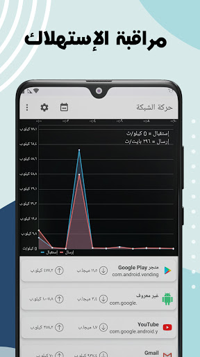 تمكنك تلك الميزة من تحديد أي سلوك مريب للتطبيقات التي تقوم باستهلاك كمية كبيرة من البيانات من دون علمك، كما يقوم التطبيق بتحديد كمية البيانات المرسلة والمستقبلة بدقة عالية.