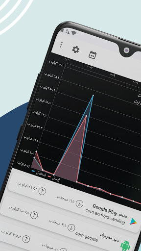 عن طريق شاشة "حركة الشبكة" تستطيل الوصول إلى معدل نقل البيانات من وإلى الهاتف في الوقت الفعلي، كما تستطيع معرفة استهلاك التطبيقات للإنترنت بشكل دقيق للتعرف على أكثر التطبيقات استهلاكاً للإنترنت في المدة التي تحددها (يوم، شهر، سنة).