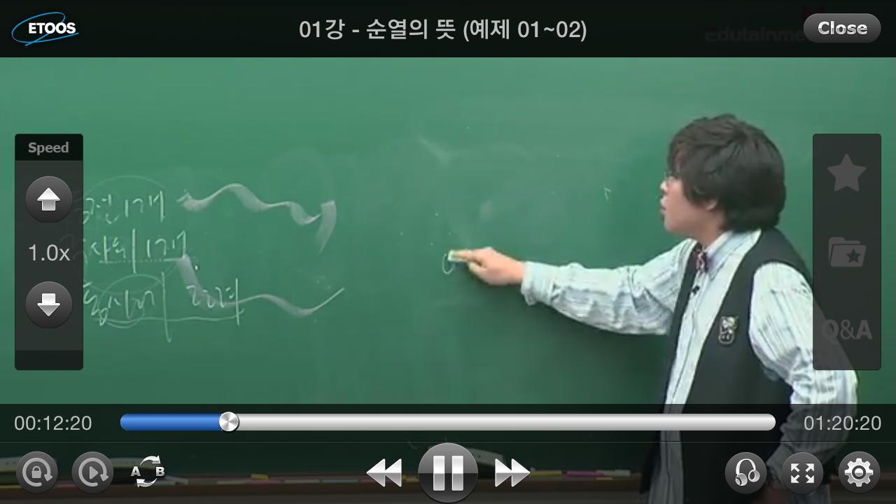 이투스(www.etoos.com/m.etoos.com)에서 제공하는 모든 강의와 동영상 콘텐츠를 고화질 영상은 물론 다양한 플레이어 기능과 함께 수강하실 수 있습니다. 강좌 다운로드, 최근 재생리스트, 배속 및 구간반복 기능, 북마크 등 다양한 기능을 제공하며, 2.00 버전으로의 업데이트를 통해 기존 1.00 버전에서 문제가 되었던 부분들이 대부분 개선되어 보다 편리하고 안정적인 온라인 학습환경을 제공합니다.
