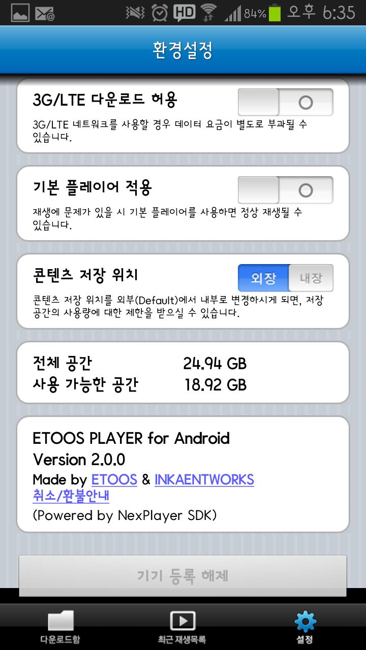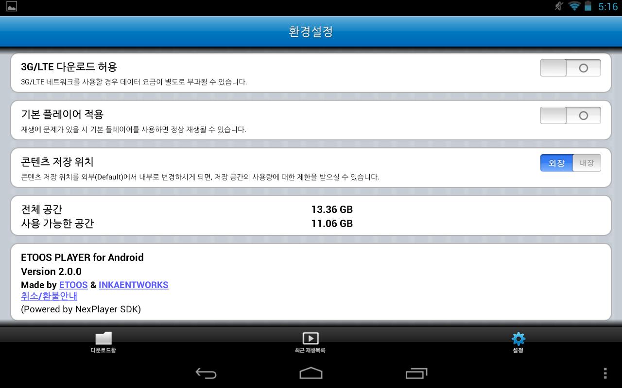 Android OS 4.1 이상 OS버전의 기기에서는 ‘이투스 플레이어 HD’를 설치하여 사용하시기 바랍니다.