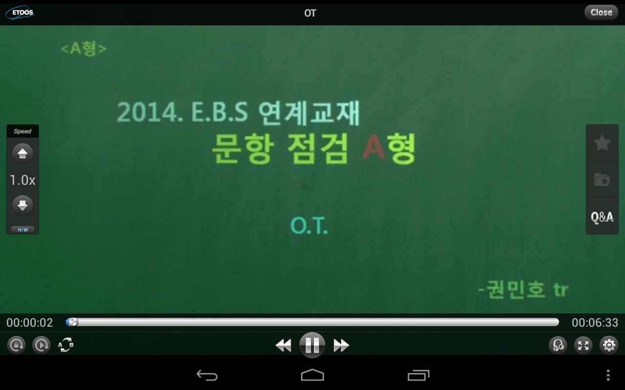 Android OS 4.0 이하 OS버전의 기기에서는 ‘이투스 플레이어 2.3’을 설치하여 사용 바랍니다.