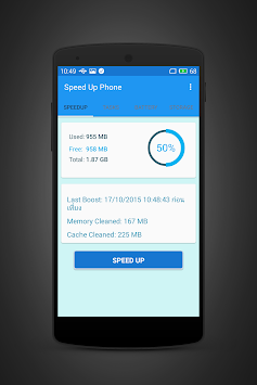 Smart phone applications for the phone feel slow Speed UP Phone application for Android can run better. By deleting junk files that are in use when Smart Phone for a long time. Increase speed performance processing programs better and faster. Easy to clean junk and increase free memory space.
