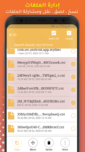نقل المحتوى ونسخ / لصق وضغط وفك ضغط وحذف ونقل الملفات ، بالإضافة إلى استخراج ملفات ZIP و RAR و BIN و TAR و APK بين محرك الأقراص المحلي والتخزين الخارجي والتخزين السحابي