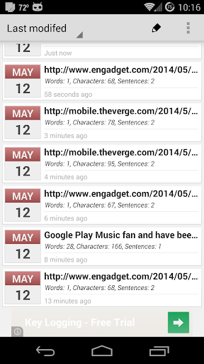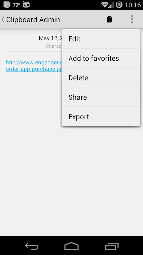 Clipboard Admin هي مدير الحافظة لالروبوت.يعمل التطبيق في خلفية حفظ جميع النص المنسوخ في SQL DB للعرض و / أو التعديل في وقت لاحق.يتم تمكين أيقونة علبة النظام لسهولة الوصول إليها مع عرض الإدخال الأكثر حداثة أيضا.