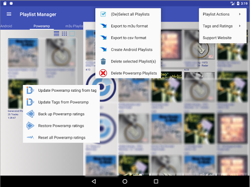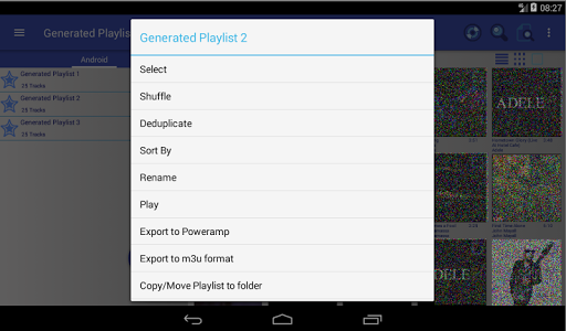 بصرف النظر عن الوظيفة المعتادة لإنشاء قوائم التشغيل من الموسيقى الخاصة بك، هناك العديد من الميزات الفريدة مثل إنشاء Android فقط ولكن أيضا .m3u و SMBقوائم التشغيل.