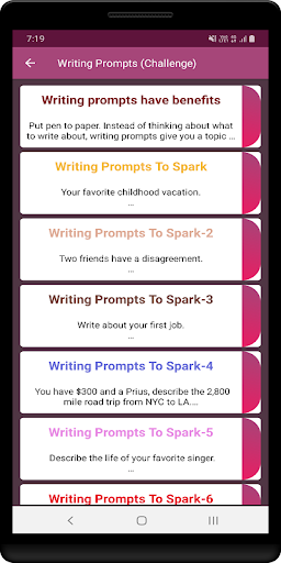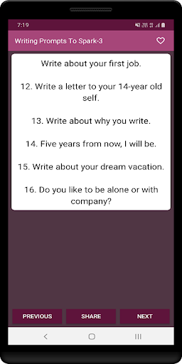 ما إذا كنت قد كتبت بالفعل نصف قصتك أو لم تكتب كلمة، يتضمن هذا التطبيق المطالبات و كتابة الأفكار اللازمة للحفاظ على تحريك قصتك. تدعت عمليات الكتابة للحصول على فرصة في ممارسة مهاراتك في الكتابة وتحديها.