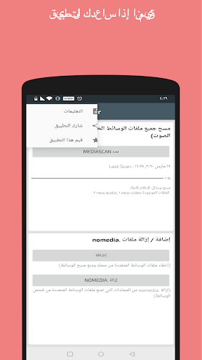 - لا يدعم هذا التطبيق إضافة أو إزالة ملفات .nomedia في sdcard.