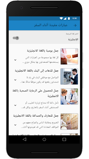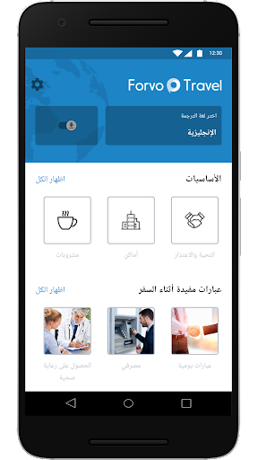 يتم تقديم المحتوى في قسمين: الأساسيات وعبارات السفر المفيدة ، يحتوي كل منها على فئات مختلفة ذات صلة بالسفر. في الأساسيات ، توجد مفردات مفيدة للمواقف اليومية ، بينما تحتوي عبارات السفر المفيدة على عبارات مفيدة لحالات معينة.