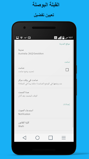 • إظهار الإبرة مع القبلة اتجاه القبلة ضد موقعك.