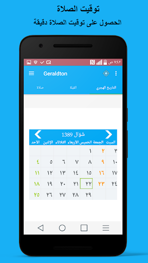 كما يوفر هذا البرنامج الإسلامي المحدد التاريخ الهجري لجميع المسلمين في جميع أنحاء العالم ، وذلك باستخدام تقويم Ummal-Qura على أساس حساب مرحلة الهلال.