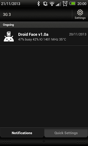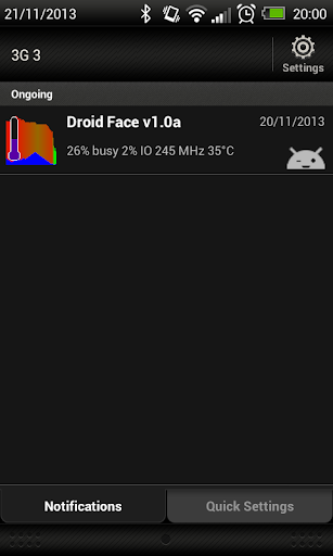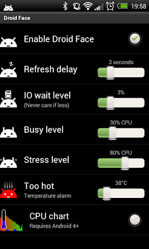 - I/O wait indicator: Whenever significant SD card access is making any app wait, Droid Face shows it.