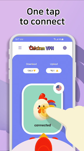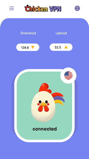 Chicken VPN سريع للغاية وموثوق به، مع الحد الأدنى من فقدان السرعة أثناء الاستخدام. عندما تقوم بتشغيل VPN آمن، فإنه يؤمن حركة مرور الإنترنت الخاصة بك من خلال نفق مشفر آمن. كما أنه يحمي بياناتك من أي شخص يتسلل حول الشبكة