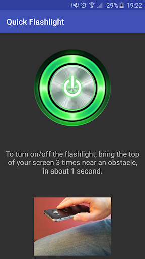 * Turn on/off your flashlight in 1 second with a simple gesture.