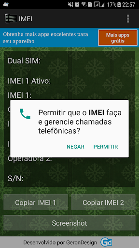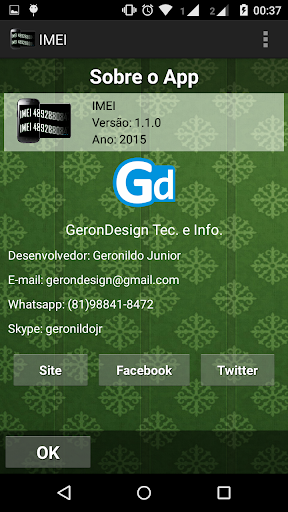 تم تصميم تطبيق IMEI بالنسبة لك الذين يحتاجون إلى معرفة بسرعة ما IMEI من هاتفك، أو الجهاز اللوحي هو smatphone.إذا كنت بحاجة إلى ذلك، يمكنك نسخ الصور، وشارك الشاشة عبر WhatsApp أو البريد الإلكتروني، وتحقق من الصورة على موقع Anatel الخاص بشركة Anatel (للعملاء من البرازيل).سهل جدا وسريع.فقط افتح التطبيق وتذهب.