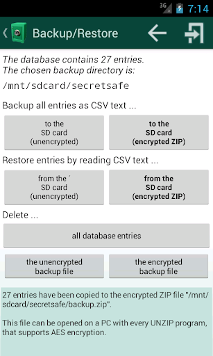 * وظيفة النسخ الاحتياطي والتي تستخدم ملفات ZIP مع تشفير AES-256.