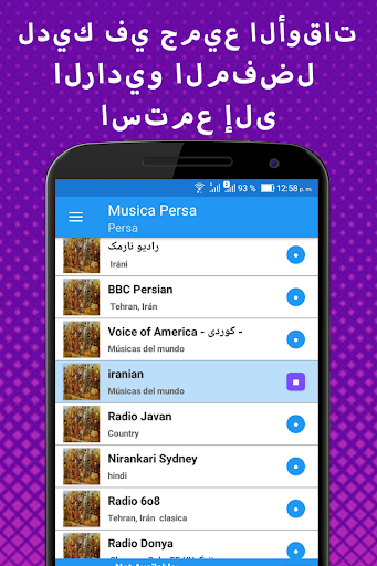 أفضل أغاني الموسيقى الإيرانية الفارسية تستمع مجانًا إلى محطات الراديو مع مجموعات وفرق من PERSIA ، لذا استمتع بالتطبيق الرائع الذي يمكنك سماعه الموسيقى الإيرانية التي تنقل طهران ، أصفهان ، كاشان ، يادز ، برسيبوليس ، شيراز ، نقش رستم ومن أي مكان كنت ، نظرًا لأنك لست بحاجة إلى مشغل لتنزيل الموسيقى القديمة ، تفضل فارس بإيقاعات إيراني النموذجية ، ضمن هذا المفهوم ، ستجد عددًا كبيرًا من الأنواع مثل: الموسيقى التقليدية الأصلية لإيران ، الموسيقى الفارسية الكلاسيكية ، الرومانسية الفارسية ، الفارسية التقليدية إيقاعات الموسيقى الفارسية الراقصة ، الموسيقى العربية ، الأغاني الحزينة إيران ، الأغاني باللغة الفارسية.