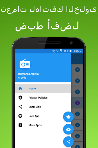 هل تبحث عن نغمات الجزائر المفضلة لديك مع نغمات الموسيقى الجزائرية التقليدية مع الأغاني الأكثر شهرة؟ توقف عن البحث نظرًا لأن لديك الآن سهولة الاستخدام وتنزيل أفضل نغمات رسائل الموسيقى العربية الأندلسية على هاتفك المحمول ، وتصفح بسرعة باستخدام نغمات الرنين. الموسيقى الشرقية العربية الكلاسيكية التي ستكون متاحة في أي وقت وفي أي مكان. لقد حان الوقت لتستمتع بمشاركتها مع أصدقائك عبر الشبكات الاجتماعية التي تفضلها مع أفضل نغمات الفولكلور الجزائرية التقليدية ونغمات الرنين الموسيقية الروسية المجانية وتنزيل جميع نغمات الشعبي الكلاسيكية المتنوعة لعام 2019 مجانًا وتضع قائمة رائعة المفضلة لديك النغمات والاستماع إلى جميع أصوات الإخطارات نغمات موسيقى الجزائر الحرة ؛ جميع النغمات متوفرة في جميع الأوقات ، هذا التطبيق سهل الاستخدام ، حيث يمكنك البحث باسم النغمة الجزائرية المفضلة ويمكنك إنشاء قائمة بجميع النغمات العربية الجزائرية والأصوات الإيقاعية نغمات موسيقية غرناتي باللغة العربية للهاتف المجاني ، نغمات موسيقى شرقية عربية جديدة 2019. أصوات منبه للمسلمين ، إلخ.