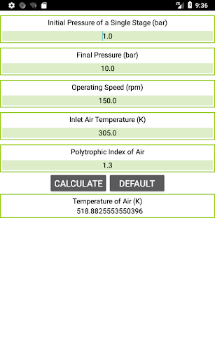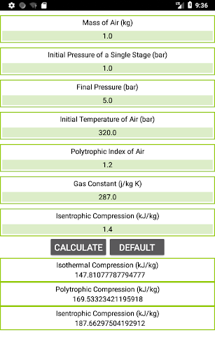 - حساب العمل المطلوب - حساب الطاقة المشار إليه - - درجة حرارة حساب الهواء - قوة الضاغط