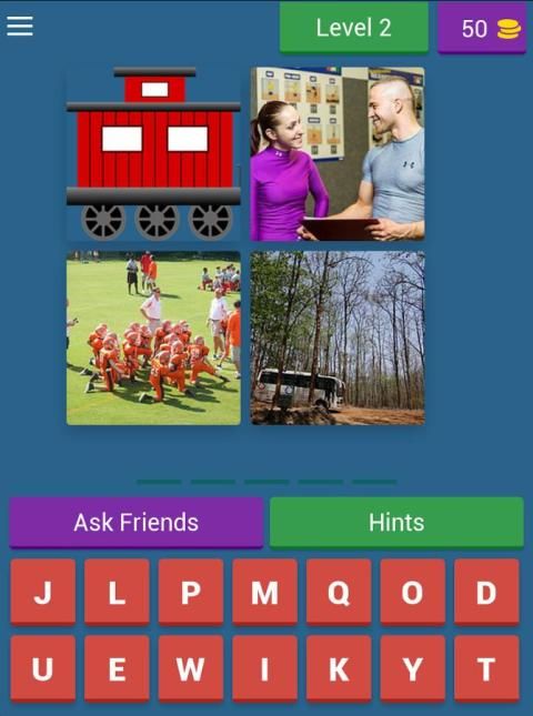 لعبة الكلمة الأكثر شعبية في جميع أنحاء. تحدي المهارات المعرفية واختبار المفردات الخاصة بك بطريقة الخالدة. تخمين كلمة من أربع صور معينة. مناسبة لجميع الأعمار. لعب في أي وقت وتفقد نفسك في عالم مدهش من الكلمات والصور. ما مجموعه 260 مستويات مثيرة المتاحة.
