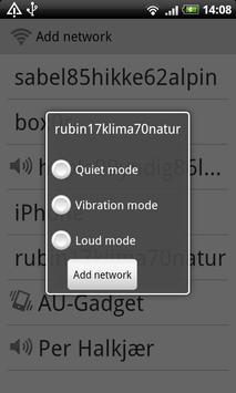 This little utility will let you configure your phone to automatically change ringer mode when you connect to a WiFi-network. You can choose between those networks the phone already remembers.